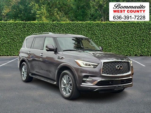 Recent Arrival! Clean CARFAX. 2022 INFINITI QX80 LUXE 5.6L V8 7-Speed Automatic 4WD 4D Sport Utility Anthracite Gray 13 Speakers, 2.937 Axle Ratio, 3rd row seats: split-bench, 4-Wheel Disc Brakes, ABS brakes, Air Conditioning, All-Season Floor Mats, All-Season Package, Alloy wheels, AM/FM radio: SiriusXM, Anti-whiplash front head restraints, Auto High-beam Headlights, Auto tilt-away steering wheel, Auto-dimming door mirrors, Auto-dimming Rear-View mirror, Auto-leveling suspension, Automatic temperature control, Brake assist, Bumpers: body-color, Cargo Package, Cargo Protector, Compass, Console Net, Delay-off headlights, Driver door bin, Driver vanity mirror, Dual front impact airbags, Dual front side impact airbags, Electronic Stability Control, Emergency communication system: INFINITI InTouch w/1-year trial, First-Aid Kit, Four wheel independent suspension, Front anti-roll bar, Front Bucket Seats, Front Center Armrest, Front dual zone A/C, Front fog lights, Front reading lights, Fully automatic headlights, Garage door transmitter: HomeLink, Heated door mirrors, Heated Front Bucket Seats, Heated front seats, Heated steering wheel, High-Density Non-Slip Rear Cargo Carpet, Illuminated entry, INFINITI Radiant Illuminated Cargo Scuff Plates, INFINITI Radiant Illuminated Kick Plates (N93), Leather Shift Knob, Leather steering wheel, Leather-Appointed Seats, Literature Kit, Low tire pressure warning, Memory seat, Navigation system: INFINITI InTouch Navigation, Nylon-Cord Cargo Net, Occupant sensing airbag, Outside temperature display, Overhead airbag, Overhead console, Panic alarm, Passenger door bin, Passenger vanity mirror, Power door mirrors, Power driver seat, Power Liftgate, Power moonroof, Power passenger seat, Power steering, Power windows, Premium audio system: Bose, Radio data system, Radio: Bose Premium Audio System w/13 Speakers, Rain sensing wipers, Rear air conditioning, Rear anti-roll bar, Rear reading lights, Rear seat center armrest, Rear window defroster, Rear window wiper, Reclining 3rd row seat, Remote keyless entry, Roof Rail Cross Bars, Security system, Speed control, Speed-sensing steering, Split folding rear seat, Spoiler, Steering wheel memory, Steering wheel mounted audio controls, Tachometer, Telescoping steering wheel, Tilt steering wheel, Traction control, Trip computer, Turn signal indicator mirrors, Variably intermittent wipers, Voltmeter, Wheels: 20" x 8.0" Aluminum-Alloy.